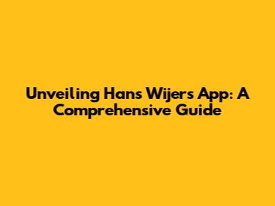Unveiling Hans Wijers' App: A Comprehensive Guide