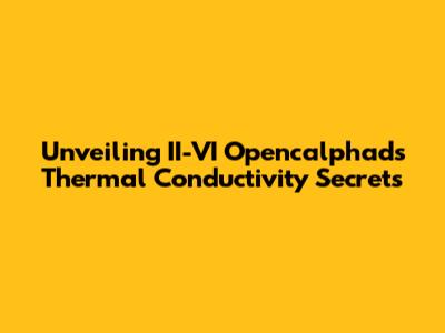 Hey there, tech enthusiasts! Ever wondered about the heat inside your gadgets? You know, how efficiently your phone or laptop gets rid of the warmth generated by all that processing power? Well, a super important factor in this is thermal conductivity, and today, we're diving deep into the thermal conductivity of II-VI Opencalphad materials. This is seriously cool stuff, especially for those of you who geek out over the nitty-gritty of material science and electronics. We'll break down what thermal conductivity is, why it matters, and how it relates to II-VI Opencalphad. Buckle up, because it's going to be an awesome ride!