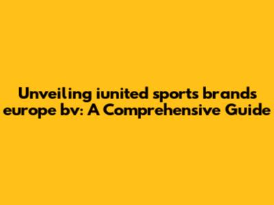Unveiling Iunited Sports Brands Europe Bv: A Comprehensive Guide