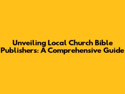 Unveiling Local Church Bible Publishers: A Comprehensive Guide