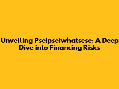 Unveiling Pseipseiwhatsese: A Deep Dive Into Financing Risks