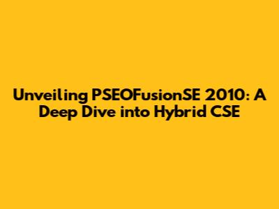 Unveiling PSEOFusionSE 2010: A Deep Dive Into Hybrid CSE