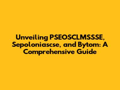 Hey guys, let's dive into some fascinating topics today! We're gonna break down PSEOSCLMSSSE, Sepoloniascse, and Bytom, exploring what these terms mean and why they're important. Buckle up, because this is going to be a deep dive into some potentially complex areas, but I'll do my best to keep it clear and easy to understand. Let's get started, shall we?