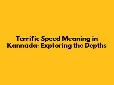 Unveiling 'Terrific Speed' In Kannada: A Deep Dive