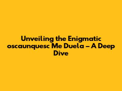 Unveiling The Enigmatic 'oscaunquesc Me Duela' – A Deep Dive