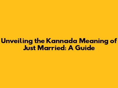 Unveiling The Kannada Meaning Of 'Just Married': A Guide