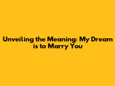 Unveiling The Meaning: My Dream Is To Marry You