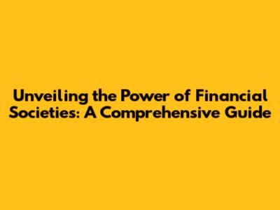 Unveiling The Power Of Financial Societies: A Comprehensive Guide
