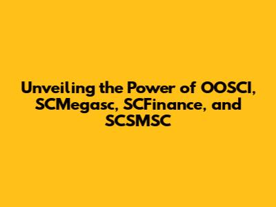 Unveiling The Power Of OOSCI, SCMegasc, SCFinance, And SCSMSC