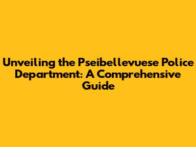 Unveiling The Pseibellevuese Police Department: A Comprehensive Guide