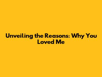 Unveiling The Reasons: Why You Loved Me