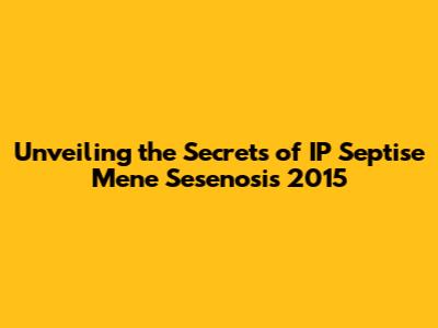 Unveiling The Secrets Of IP Septise Mene Sesenosis 2015