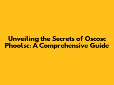 Unveiling The Secrets Of Oscosc Phoolsc: A Comprehensive Guide