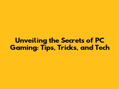 Unveiling The Secrets Of PC Gaming: Tips, Tricks, And Tech