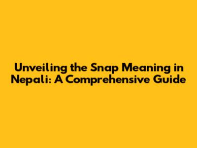 Unveiling The Snap Meaning In Nepali: A Comprehensive Guide