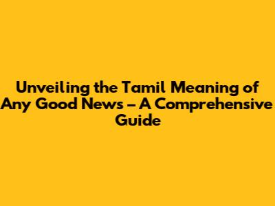 Unveiling The Tamil Meaning Of Any Good News – A Comprehensive Guide
