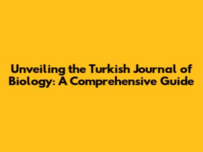 Unveiling The Turkish Journal Of Biology: A Comprehensive Guide