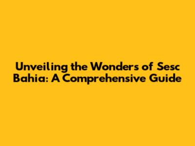 Unveiling The Wonders Of Sesc Bahia: A Comprehensive Guide