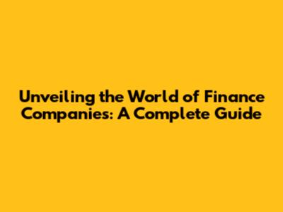 Unveiling The World Of Finance Companies: A Complete Guide