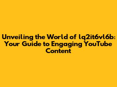 Unveiling The World Of Lq2it6vl6b: Your Guide To Engaging YouTube Content