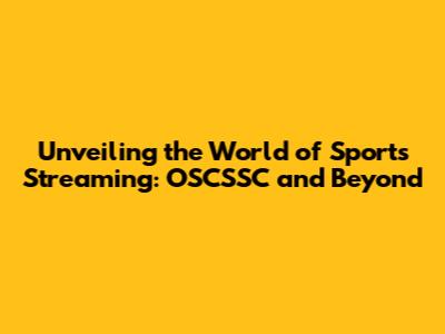 Unveiling The World Of Sports Streaming: OSCSSC And Beyond