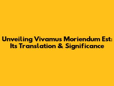 Unveiling 'Vivamus Moriendum Est': Its Translation & Significance