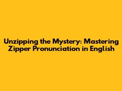 Unzipping The Mystery: Mastering Zipper Pronunciation In English