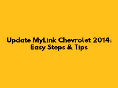 Update MyLink Chevrolet 2014: Easy Steps & Tips
