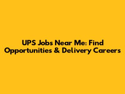 UPS Jobs Near Me: Find Opportunities & Delivery Careers