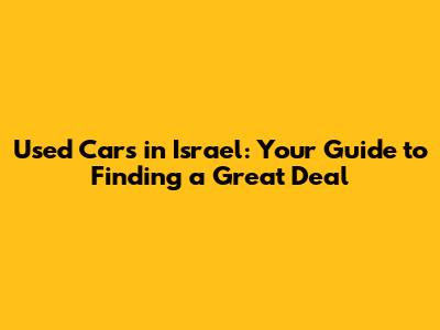 Hey guys! So, you're looking to snag a used car in Israel, huh? Awesome! Navigating the used car market can feel like a bit of a maze, but don't sweat it. This guide is here to help you find the perfect ride without pulling your hair out. We'll dive into everything from where to look, what to consider, and how to avoid those sneaky pitfalls. Get ready to cruise through the Israeli car scene with confidence! Let's get started.