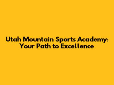 Utah Mountain Sports Academy: Your Path To Excellence