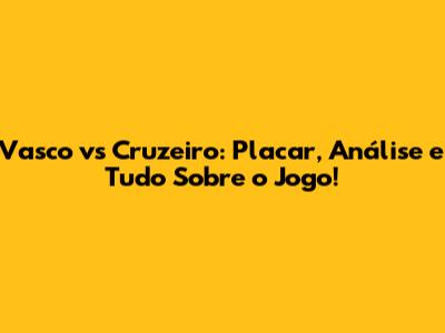 Vasco Vs Cruzeiro: Placar, Análise E Tudo Sobre O Jogo!