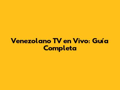 Venezolano TV En Vivo: Guía Completa