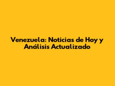 Venezuela: Noticias De Hoy Y Análisis Actualizado