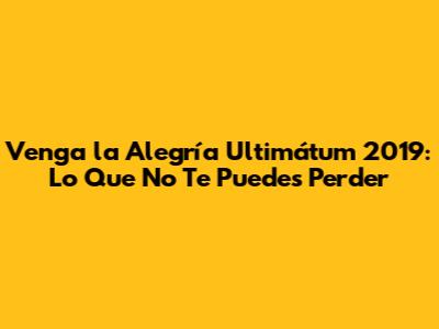 Venga La Alegría Ultimátum 2019: Lo Que No Te Puedes Perder