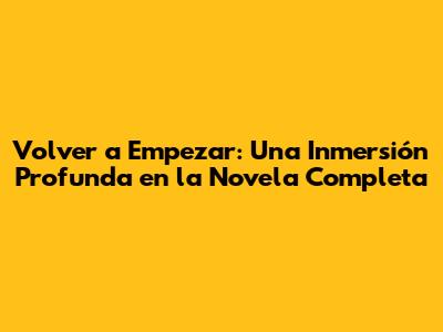 Hey, amigos! ¿Listos para sumergirnos en el fascinante mundo de "Volver a Empezar", una novela completa que promete engancharte desde la primera página? Prepárense porque vamos a explorar cada rincón de esta historia, desde sus personajes entrañables hasta los giros argumentales que te mantendrán al borde del asiento. ¿Están preparados para analizar a fondo esta obra maestra? ¡Vamos allá!