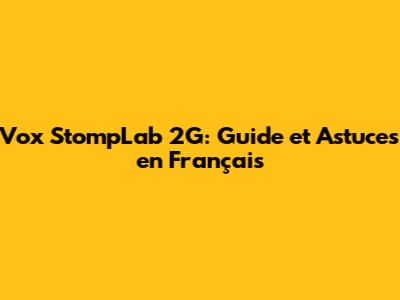 Vox StompLab 2G: Guide Et Astuces En Français