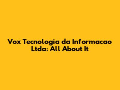 Hey guys! Today, we’re diving deep into Vox Tecnologia da Informacao Ltda, a company that might have crossed your radar. Whether you're an IT professional, a business owner, or just someone curious about the tech landscape, understanding what this company does and what it offers can be super valuable. So, let’s get started and explore everything you need to know about Vox Tecnologia da Informacao Ltda. We'll cover their services, their impact on the industry, and why they might be a key player in the future of IT. Buckle up, because we're about to break it all down in a way that’s easy to understand and even a little fun!
