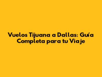 Vuelos Tijuana A Dallas: Guía Completa Para Tu Viaje