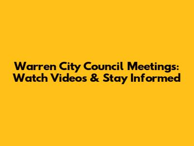 Warren City Council Meetings: Watch Videos & Stay Informed