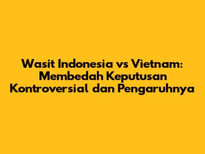 Berita wasit Indonesia vs Vietnam selalu menjadi topik hangat di kalangan penggemar sepak bola. Pertandingan antara kedua negara, khususnya ketika melibatkan elemen krusial seperti keputusan wasit, seringkali memicu perdebatan sengit. Mari kita telusuri secara mendalam mengenai berbagai aspek yang melingkupi berita wasit Indonesia vs Vietnam, termasuk analisis terhadap keputusan kontroversial, dampaknya pada hasil pertandingan, serta bagaimana hal ini memengaruhi persepsi publik terhadap kualitas perwasitan di sepak bola Indonesia.