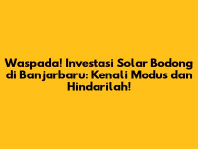Waspada! Investasi Solar Bodong Di Banjarbaru: Kenali Modus Dan Hindarilah!