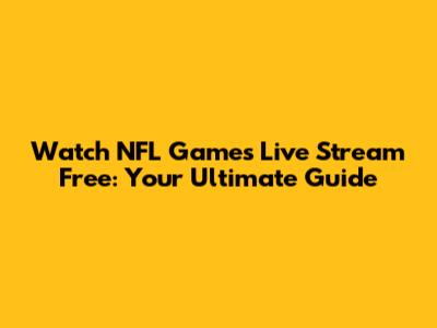 Watch NFL Games Live: Free Streaming Guide