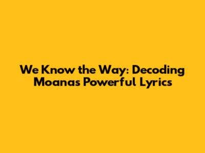 We Know The Way: Decoding Moana's Powerful Lyrics