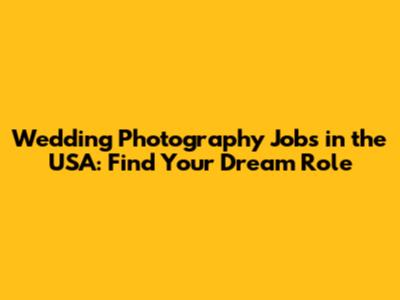 Wedding Photography Jobs In The USA: Find Your Dream Role