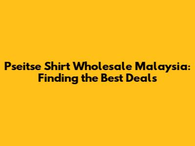 Hey guys! Looking to snag some awesome Pseitse shirts wholesale in Malaysia? You've landed in the right spot! Whether you're a retailer stocking up your shelves, a business needing branded apparel, or just someone who loves a good deal on quality shirts, this guide will walk you through everything you need to know. We'll cover where to find the best wholesalers, what to look for in terms of quality and pricing, and some insider tips to make your bulk buying experience a breeze. So, buckle up and let’s dive into the world of Pseitse shirt wholesale in Malaysia!