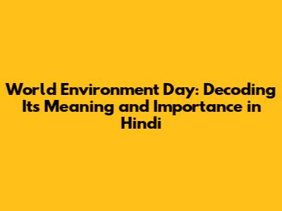World Environment Day: Meaning And Significance In Hindi