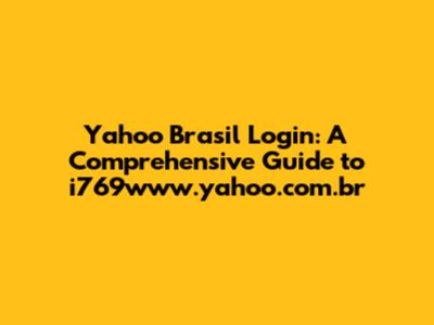 Yahoo Brasil Login: A Comprehensive Guide To I769www.yahoo.com.br