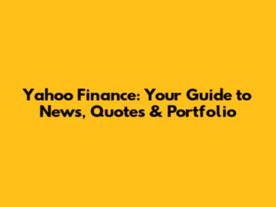 Yahoo Finance: Your Guide To News, Quotes & Portfolio