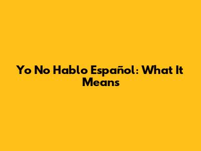 Yo No Hablo Español: What It Means